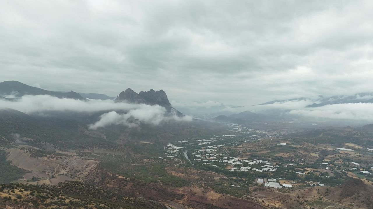 Öte yandan ise kayaların çevresini saran sis bulutu, havadan dron ile görüntülendi.