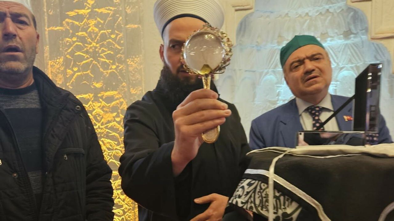 Başerdem, yaptığı açıklamada, Suriye’nin Hama şehrinden, Abdülkadir Geylani Hazretleri’nin neslinden gelen Şeyh Hüseyin Hamevi’nin Seyyid ve Şerif sülalesinden kendisine hassaten gönderilerek hediye edilen Peygamber Efendimiz ’in Saç-ı Şerif’lerini, Kandil günlerinde halkın ziyaretine açılmak üzere bağışladığını belirtti.