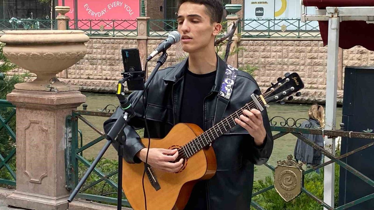 Eskişehir’de bir sokak müzisyeni, 9 günlük bayram tatilinde Porsuk Bulvarı’nda turistlere konser keyfi yaşattı.