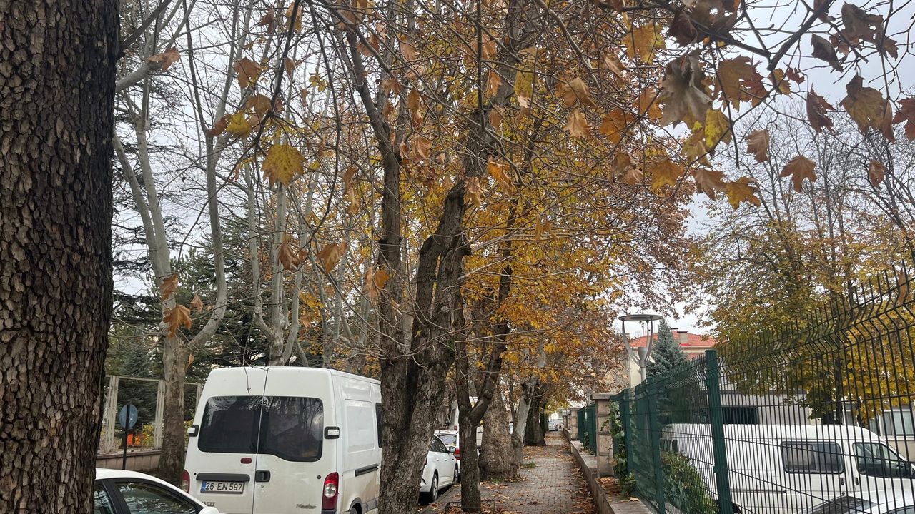 Odunpazarı ilçesi Kırmızıtoprak Mahallesi DSİ Sokak’ta sonbaharın son günlerinin güzelliği yaşanıyor. Diğer mevsimlerde de güzel bir görünüşe sahip olmasıyla bilinen sokak boyunca bulunan yaşlı ağaçların oluşturduğu manzara, adeta kartpostalları aratmıyor.