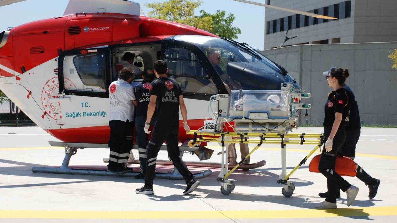 Samsun’da prematüre doğan ve akciğer solunum sıkıntısı bulunan 4 buçuk aylık Uyar bebek, 90 günlük tedavisinin devamı için helikopterle Eskişehir’e getirildi.