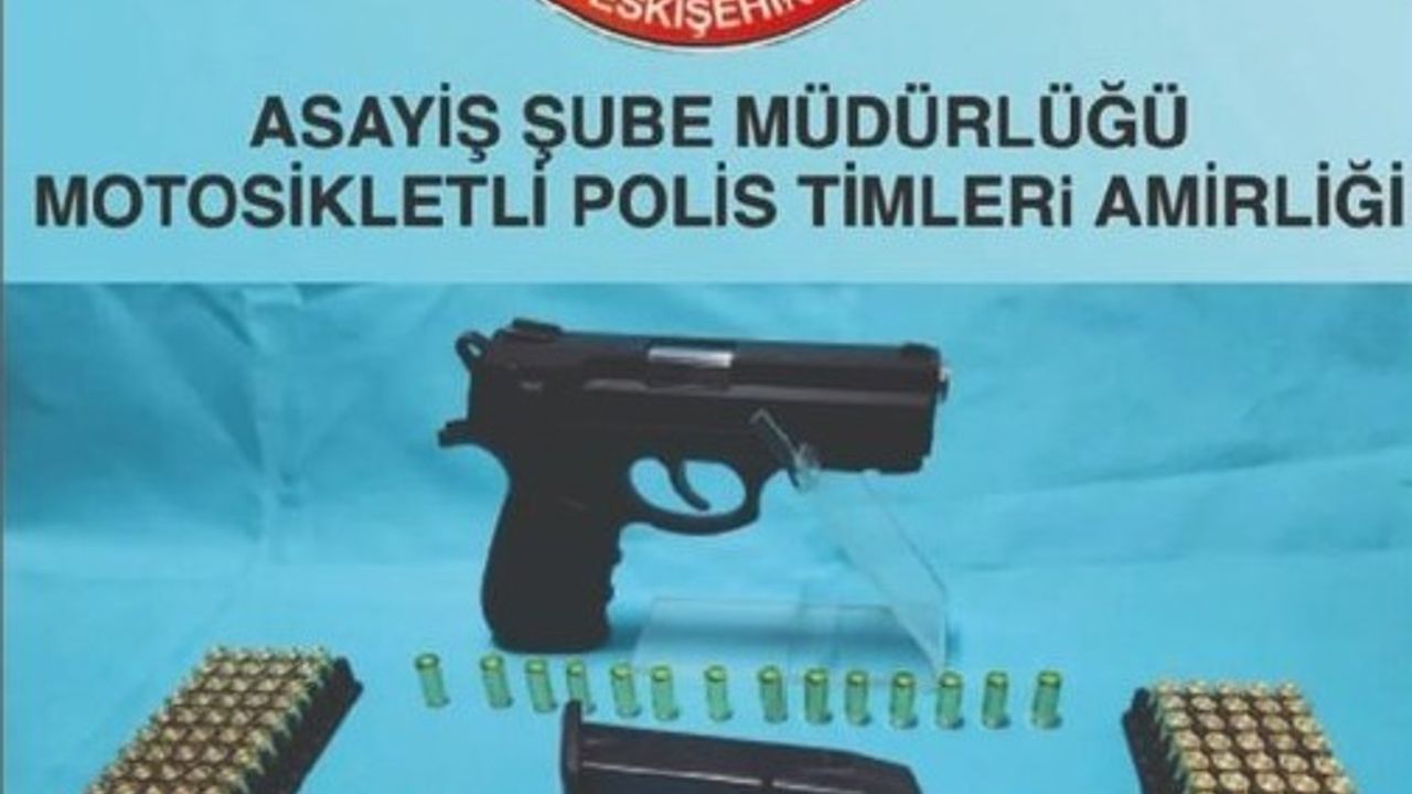 Eskişehir Emniyet Müdürlüğü ekiplerinin şüphe üzerine durduğu araçtan 1 kurusıkı tabanca ve 114 kurusıkı fişek, 3 gram metamfetamin maddesi, 1 hassas terazi ele geçirildi.