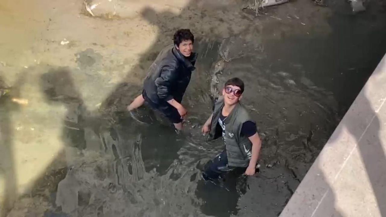 Kötü koku ve çamura rağmen çayın içerisine giren 2 genç de maddi değeri olan materyaller bulmaya çalıştı. Çöp olarak nitelendirdikleri 1 kredi kartı, bıçak ve saat gibi çeşitli eşyalar ele geçiren gençlerin sağlam bir gözlük bulunca büyük mutluluk yaşadıkları görüldü.