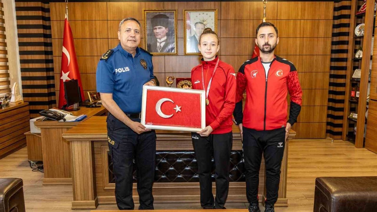 Türkiye Taekwondo Şampiyonası’nda Türkiye şampiyonu olan öğrencisi Ebrar Çakır’ı, İl Emniyet Müdürü Hakan Yılmaz makamında ağırladı.