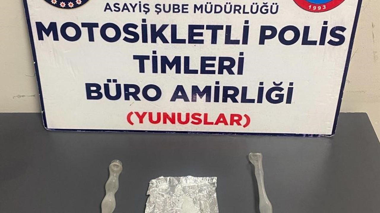 Kontroller esnasında araç sürücüsü Ü.K. isimli şahsın üzerinden 1 adet kurusıkı tabanca, 2 adet şarjör, araç sürücüsü R.G. isimli şahsın üzerinde 0,70 gram metamfetamin madde ele geçirildi.