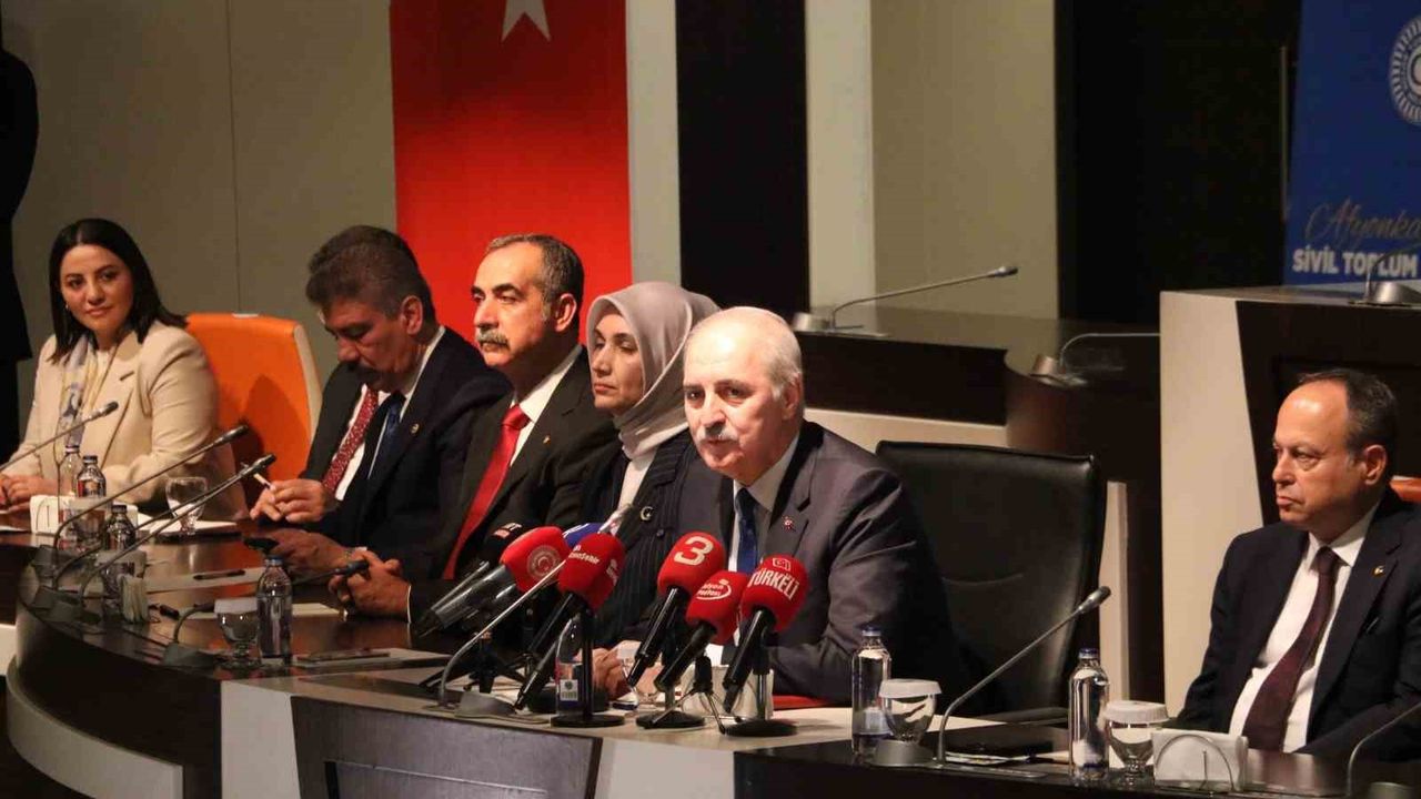 ‘Terörsüz Türkiye’ sürecine de değinen Kurtulmuş, terör örgütünün kendisini feshetme kararıyla birlikte ortaya çıkan tabloyu en iyi şekilde değerlendirmek ve bir daha terörün hiçbir şekilde Türkiye’nin gündeminde olmayacağı bir döneme geçilmesinin zorunluluğuna vurgu yaptı. TBMM Başkanı Kurtulmuş, "Çok açık söyleyeyim, bir özerklik tartışması, ayrı bir bölge tartışması, farklı anadillerin resmi dil olması şeklinde en ufak bir talep yoktur. Örgüt liderinin dışarıya çıkarılması, serbest bırakılmasıyla ilgili de en ufak bir çalışma olmadığı gibi bu konuda da bir talep söz konusu değildir. Bir Türkiye modelini dünyaya hediye edeceğiz. Çatışma çözümleri gerçekten aklıselim içerisinde en uygun yollar ve müzakereleri gerçekleştirilerek sonuçlandırılabilir. Bunun için Türkiye modeli gerçekten bütün dünya için bu konuda örnektir. Bunu da ortaya koyabilirsek ne mutlu. 103 sene evvel bu topraklarda güçlü bir şekilde, birlik ve beraberlik içerisinde, yan yana ayakta durmaktan başka şansımız yok idiyse, bugün de açıkçası güçlü bir şekilde ayağımızı yere basarak, saflarımızı sıklaştırarak, birlik ve beraberlik içerisinde yola devam etmekten başka hiçbir şansımız yoktur" dedi.