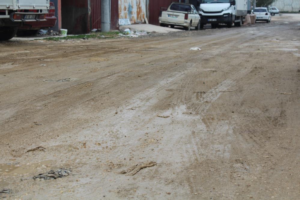 Baksan Sanayi sitesinde bir sokakta yağıştan dolayı çamur ve su birikintilerinin oluşması göze çarptı.
