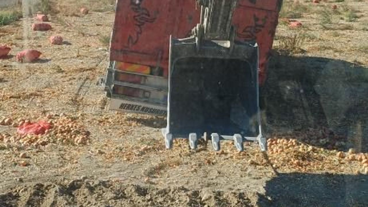 Eskişehir'de yaklaşık 22 ton soğan taşıyan bir tır ürün almak için girdiği tarlada toprağın yaş olmasından dolayı araziye battı.