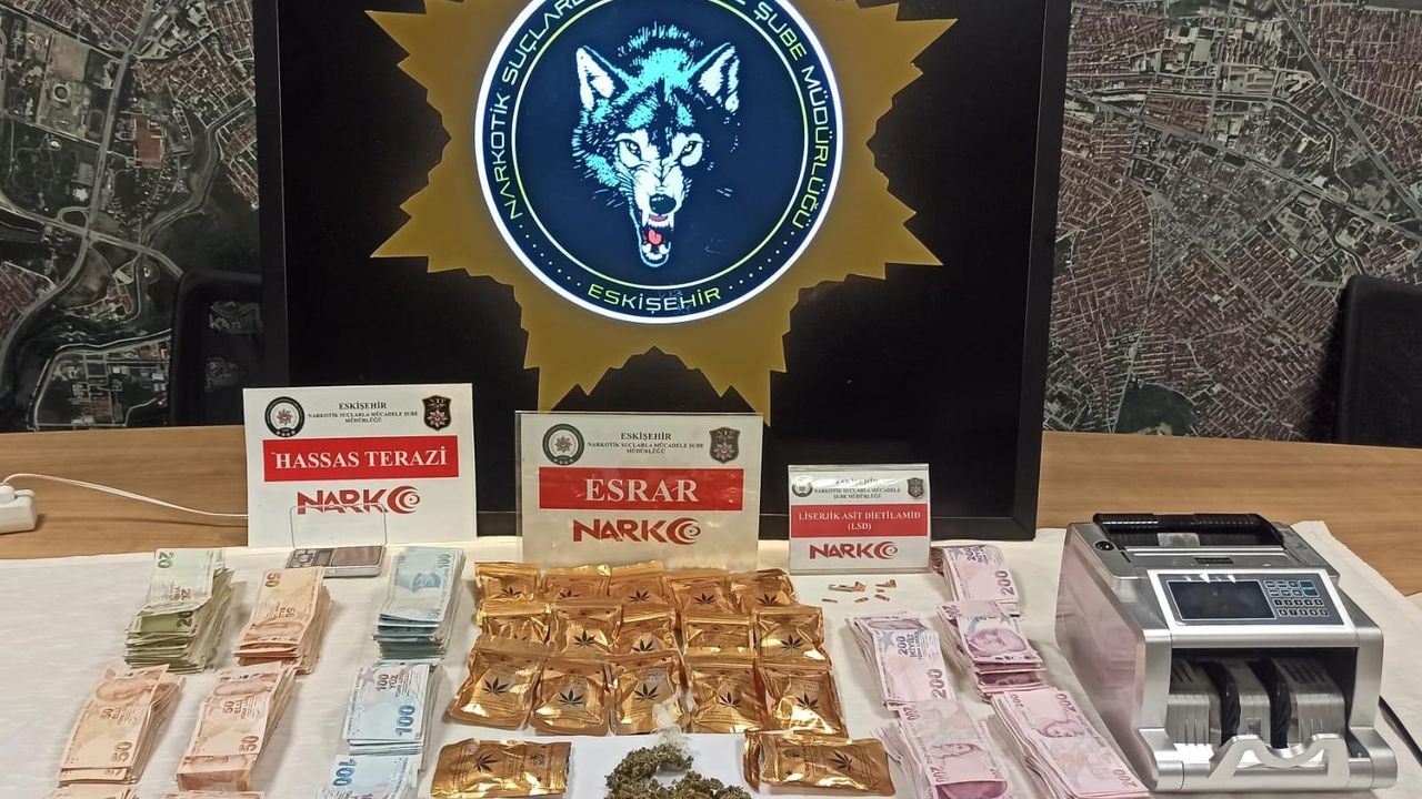 Edinilen bilgilere göre, İl Emniyet Müdürlüğü’ne bağlı Narkotik Suçlarla Mücadele Şube Müdürlüğü ekiplerince Tepebaşı İlçesi’nde torbacı olarak tabir edilen sokak satıcılarına yönelik çalışma gerçekleştirildi. Çalışmalar çerçevesinde Doğukan A. ve Erdil Anıl T. isimli şüpheliler yakalanırken, şahıslara ait evde yapılan aramada, 94,42 gram esrar, 33 adet LSD emdirilmiş pul, 1 adet hassas terazi, suç geliri olarak değerlendirilen 228 bin 840 TL para ve para sayma makinesi ele geçirildi.