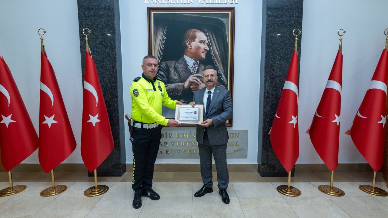 Eskişehir Valisi Hüseyin Aksoy, emniyet ve jandarmaya bağlı trafik personeline başarı belgesi takdim etti.