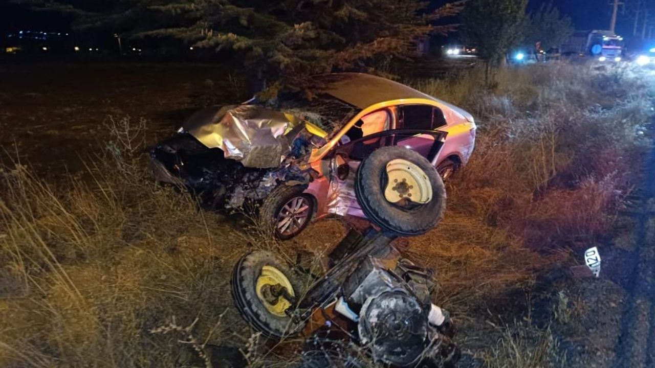 Çarpışmanın etkisi ile kontrolden çıkan otomobiller şarampole girerek dururken, traktör ise ortadan ikiye bölündü. İki parçaya ayrılan traktörün arka kısmı yol ortasında dururken ön kısmı ise şarampole düştü.