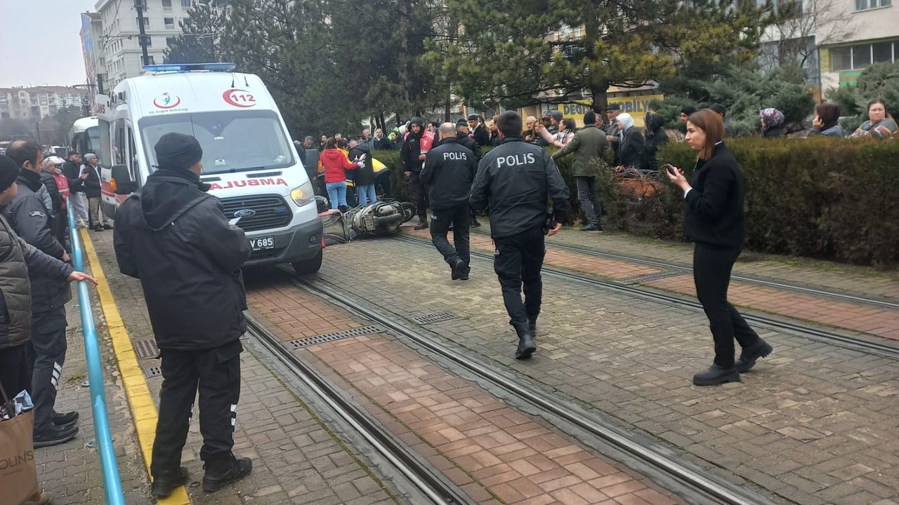 Öğle saatlerinde gerçekleşen olayda Tramvay hattına atlayan yaya İki yönden de gelen tramvayı görünce panikledi karşı yönden gelen Motokurye de yaya ya çarptı