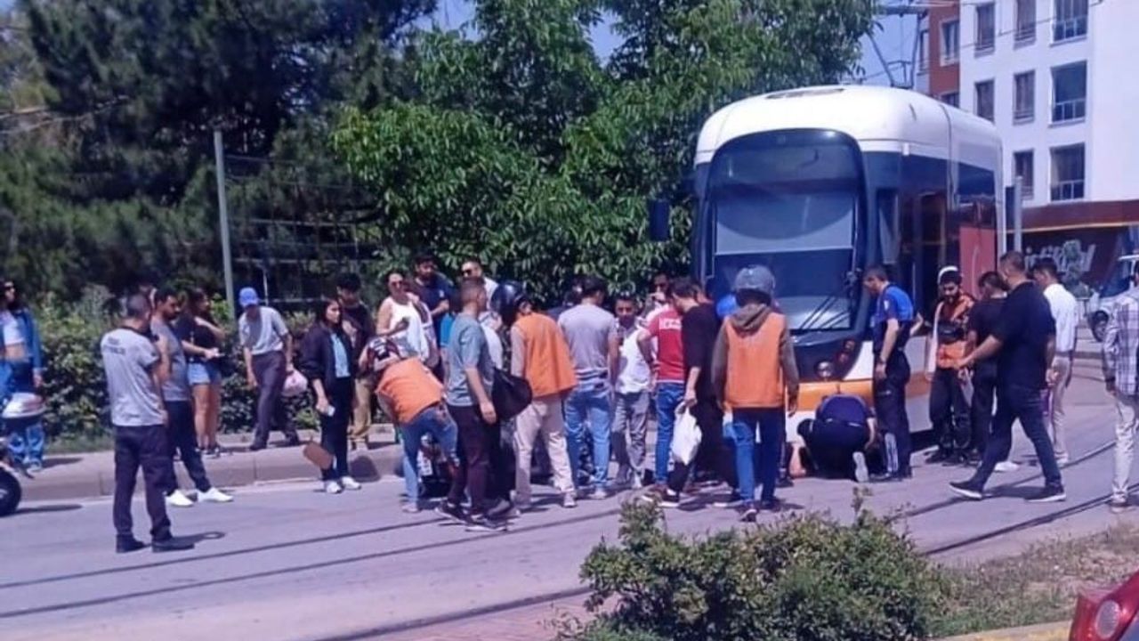 Eskişehir'de çarpıştığı tramvayın altına giren motosiklet sürücüsü, çevredeki vatandaşların yoğun çabasıyla bulunduğu yerden çıkarılarak hastaneye kaldırıldı.