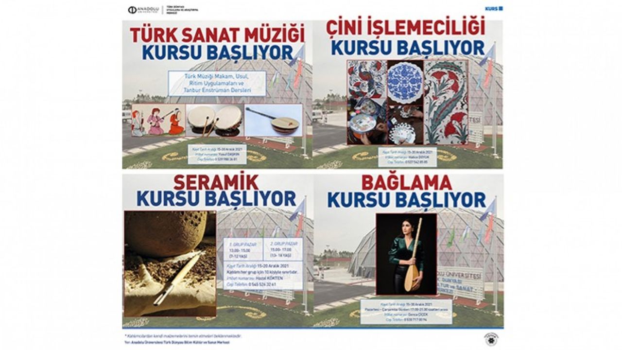 Katılımların ücretsiz olacağı çini işlemeciliği, bağlama ve Türk Sanat Müziği kursları için kayıt tarihleri 15-30 Aralık olarak belirlendi, seramik kursu için kayıtlar 20 Aralık tarihine kadar devam edecek.