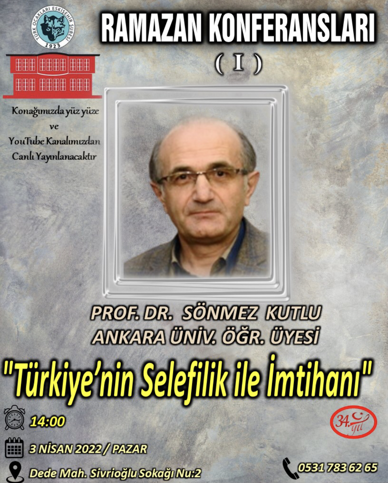 34 senedir devam ettirdiğimiz Ramazan Konferanslarımıza bu sene de devam ediyoruz. Yarın 14:00’de konferanslarımızın ilkinde İmam Maturudi konusunda yaptığı çalışmalarla temayüz etmiş, Ankara Üniversitesi İlahiyat Fakültesi Mezhepler Tarihi Öğretim Üyelerinden Prof. Dr. Sönmez KUTLU hoca olacaktır.