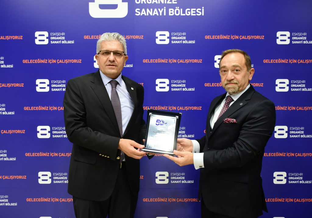 Ziyaretin sonunda 2. başkan M. Ali Yazıcı, Eskişehir OSB Başkanı Nadir Küpeli ve Eskişehir OSB Başkan Vekili ve ATAP A.Ş. Yönetim Kurulu Başkanı Metin Saraç’a TBD’nin kuruluşunun 50. yılı dolayısıyla plaket takdim etti.