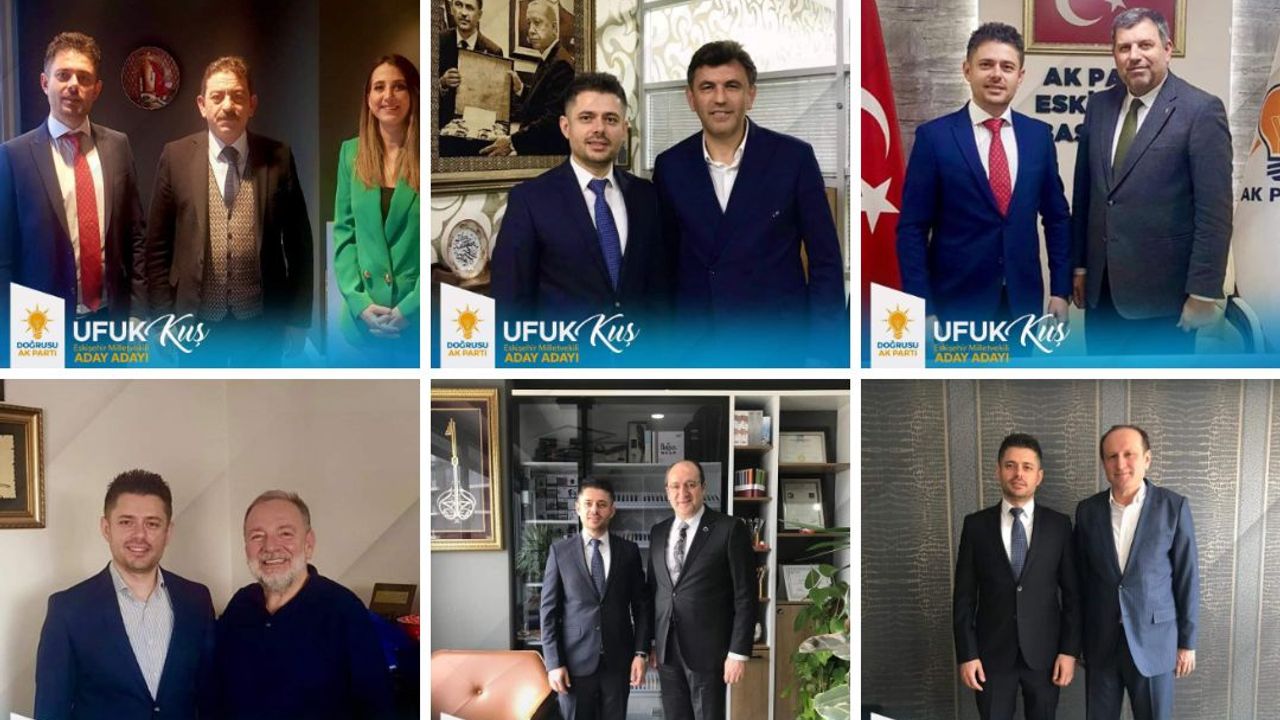 AK Parti Aday adayı Ufuk Kuş sırasıyla Partisi'nin 2006-2008 arası il Başkanı ve 2009 Tepebaşı Belediye Başkan adayı Murat CanÖzer,2014-2018 arası İl Başkanlığı görevinde bulunan M. Dündar Ünlü,2018-2023 arası İl Başkanı Zihni Çalışkan,Kurucu Merkez ilçe Başkanı ve 2019 Tepebaşı Belediye Başkan adayı Hasan Tuç,2018 de vekaleten İl Başkanlığı görevinde bulunan ve hali hazırda Büyükşehir ve Odunpazarı Belediye Meclis üyesi Murat Özcan'ı ziyaret etti.