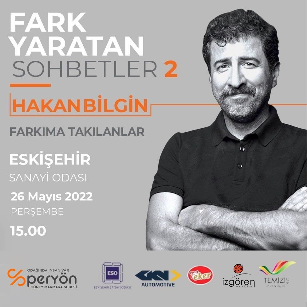 Ünlü dizi, sinema ve tiyatro oyuncusu Hakan Bilgin “Fark Yaratan Sohbetler 2” etkinliği için YARIN-26 Mayıs 2022 Perşembe Saat 15.00’da Eskişehir Sanayi Odası’nda olacak.