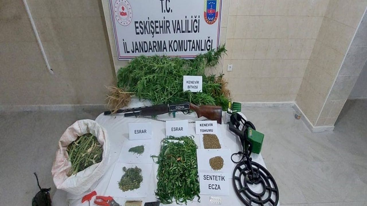 Edinilen bilgilere göre, İl Jandarma Komutanlığı’na bağlı ekipler tarafından Sivrihisar İlçesi’nde bir şahsın evinde kenevir bitkisi yetiştirdiği, imal ettiği uyuşturucu maddeleri ise satmak için müşteri aradığı öğrenildi. Ekipler tarafından şahsın evine düzenlenen operasyonda, 966 gram esrar, 53 kök kenevir, 504 gram kenevir tohumu, 9 adet sentetik ecza hap, 1 adet ruhsatsız av tüfeği, 1 adet dedektör ve 2 adet sahte polis kimliği ele geçirildi.