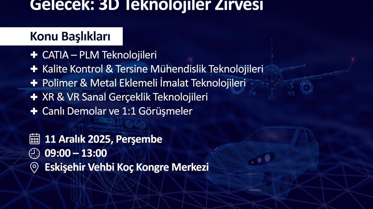 Süreçlerinde 3D Teknolojiler Zirvesi düzenleniyor. 11 Aralık Perşembe günü düzenlenecek