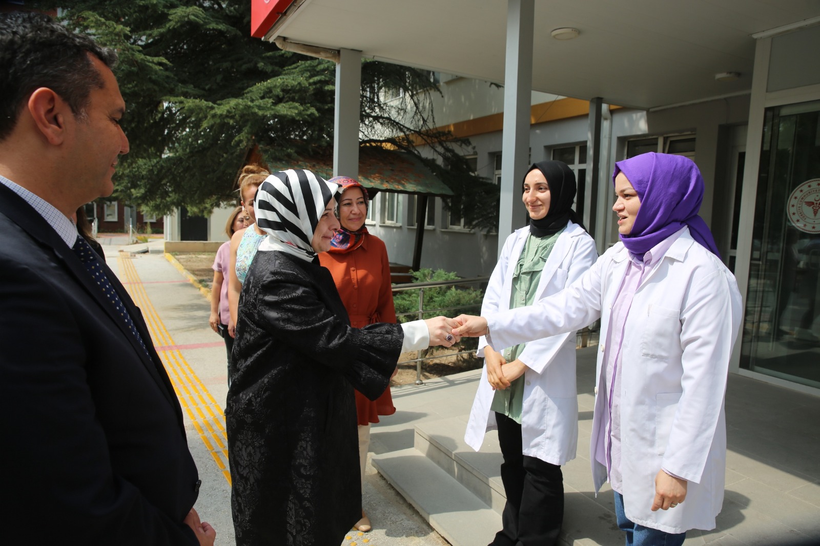Hanımefendi Ayyıldız, İl Sağlık Müdürü Prof. Dr. Uğur Bilge, Halk Sağlığı Hizmetleri Başkanı Dr. Erdinç Özkurt ve İlçe Sağlık Müdürleri ile birlikte Odunpazarı ve Tepebaşı Sağlıklı Hayat Merkezlerinde yapılan çalışmalar hakkında bilgi aldı.