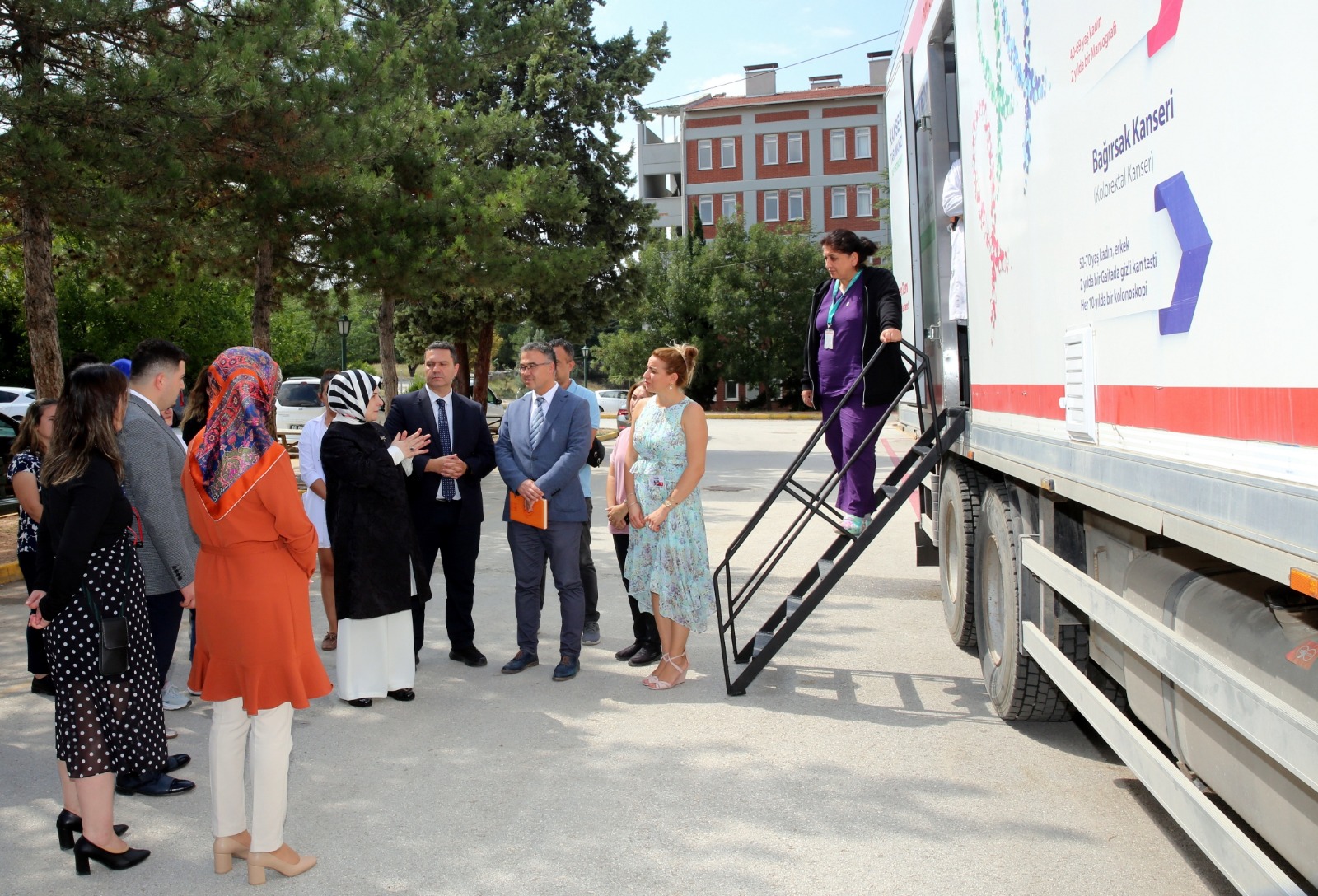 Mobil KETEM aracı ile Sağlıklı Hayat Merkezindeki KETEM Biriminde hizmete giren Metaltronıca marka Heliantus model dijital momografi cihazları hakkında bilgi alan Uzm. Dr. Ayyıldız, kanserde erken tanı için taramaların önemine dikkat çekerek, Ülke genelinde toplam 6 adet olan bu cihazların 2 tanesinin Eskişehir’de hizmet verdiğini belirtti. Daha düşük radyasyon riski ile avantaj sağlayan Mamografi Ünitesi’nde, meme kanseri teşhisinin kolay ve hızlı bir şekilde yapılacağını kaydeden Hanımefendi Ayyıldız, “Kadınlarda ölüm nedenlerinde ikinci sırada yer alan meme kanserinin erken dönem tanısında en etkili görüntüleme yöntemi mamografidir. Eskişehir'in Odunpazarı ve Tepebaşı merkez ilçelerinde bulunan KETEM'lerde ve Mobil KETEM aracımızda taramalar ücretsiz bir şekilde yapılıyor. Tüm halkımızı taramalarını yaptırmak üzere KETEM merekezlerine davet ediyorum.” dedi.