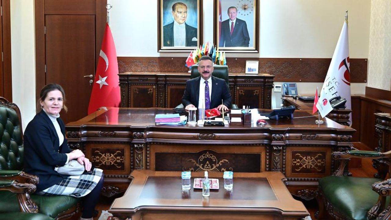 Vali Hüseyin Aksoy, 5 Aralık Dünya Kadın Hakları Günü kapsamında Hoşnudiye Mahallesi Muhtarı Figen Rençber ve Lütfiye Mahallesi Muhtarı Nurcan Yıldırım’la bir araya geldi.
