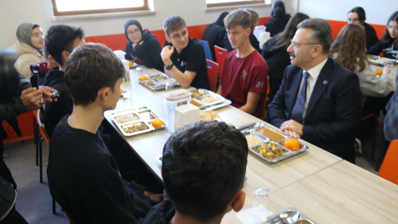 Borsa İstanbul Fen Lisesi'nde öğretmenlerle bir araya gelen Vali Hüseyin Aksoy, öğrencilerle aynı masada öğle yemeği yedi.