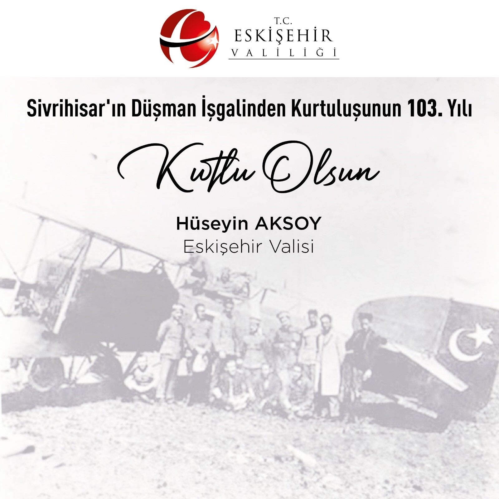 Eskişehir Valisi Hüseyin Aksoy, Sivrihisar ve Mihalıççık ilçelerinin düşman işgalinden kurtuluşunun 103'üncü yıl dönümü nedeniyle mesajlar yayımladı.