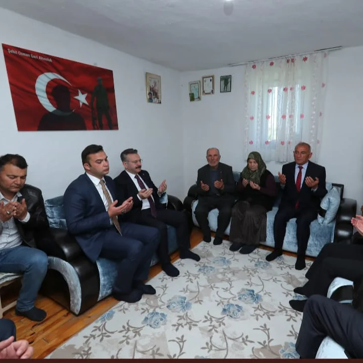 Vali AKSOY ve Başkan BELCELİ 1994 yılında vatani görevini yapmakta iken, Şırnak İli Yassıdağı civarında 29.01.1995 günü terör örgütü mensuplarıyla girilen silahlı çatışmada şehit olan Han ilçesi şehidi Osmangazi ALTINOLUK' un Babası Hasan ALTINOLUK'u ve ailesini de ziyaret ettiler.