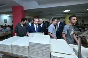 İftar öncesinde yurtta kalan öğrencilerle sohbet eden Vali Aksoy ,Ramazan ayının tüm öğrencilere, ülkemize ve İslam âlemine hayırlar getirmesi temennisinde bulunarak hayırlı Ramazanlar diledi. Ardından iftar yemeği için sıraya girerek öğrencilerle birlikte yemeğini aldı.