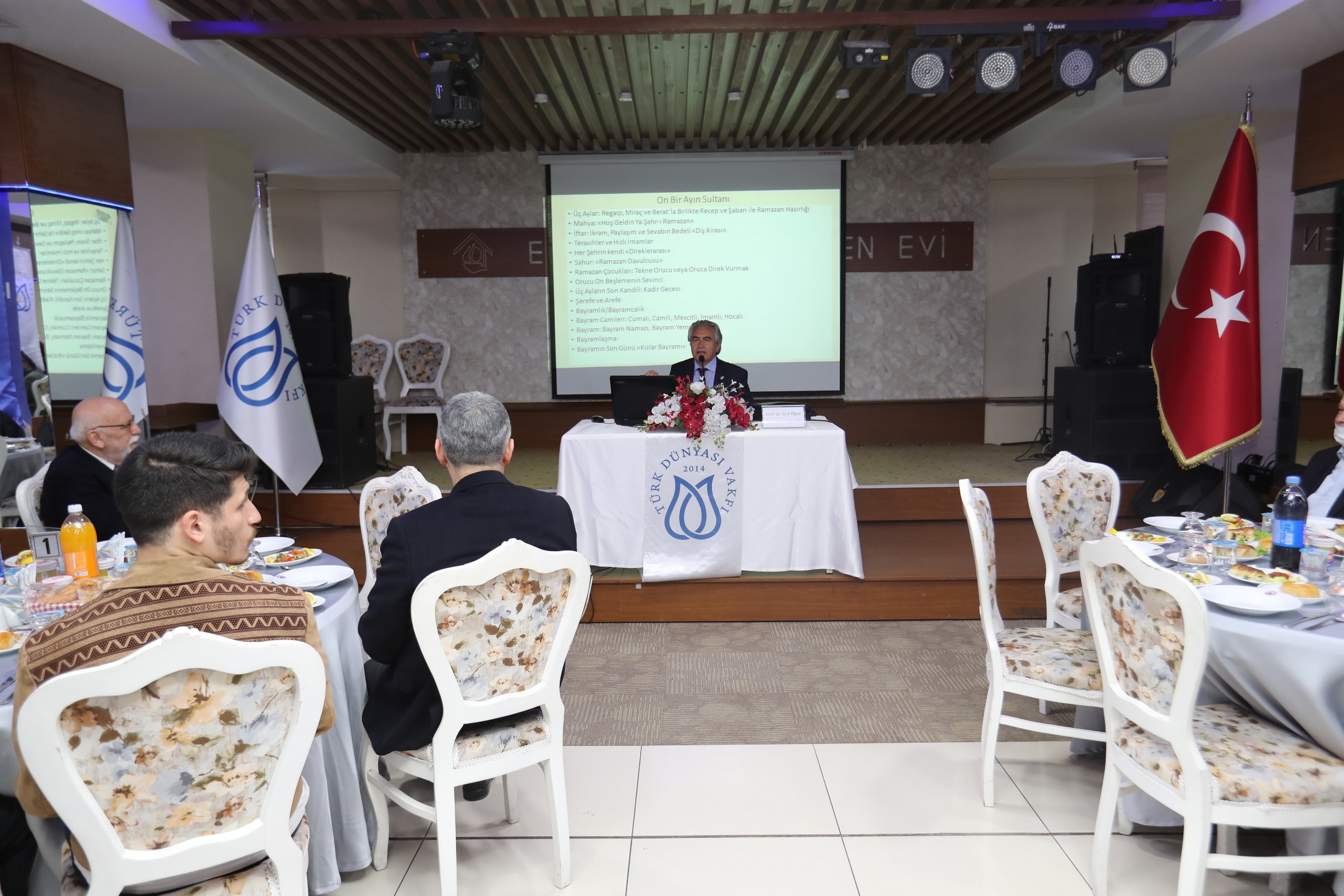İftar programı Unesco Türkiye Millî Komisyonu Başkanı ve Türk Dünyası Vakfı Genel Kurul Üyesi Prof. Dr. Öcal Oğuz’un hafızalarımızda yer edinen Ramazan gelenekleri ve görenekleri üzere yaptığı açılış konuşması ile başladı. Oğuz, gelenekselin geçmişten güç alarak geleceğe aktarılması, yaşatılması ve değerlerin kaybolmasının önüne geçileceğini böylelikle kültürel devamlılığın sağlanabileceğini konuşmasında vurguladı.