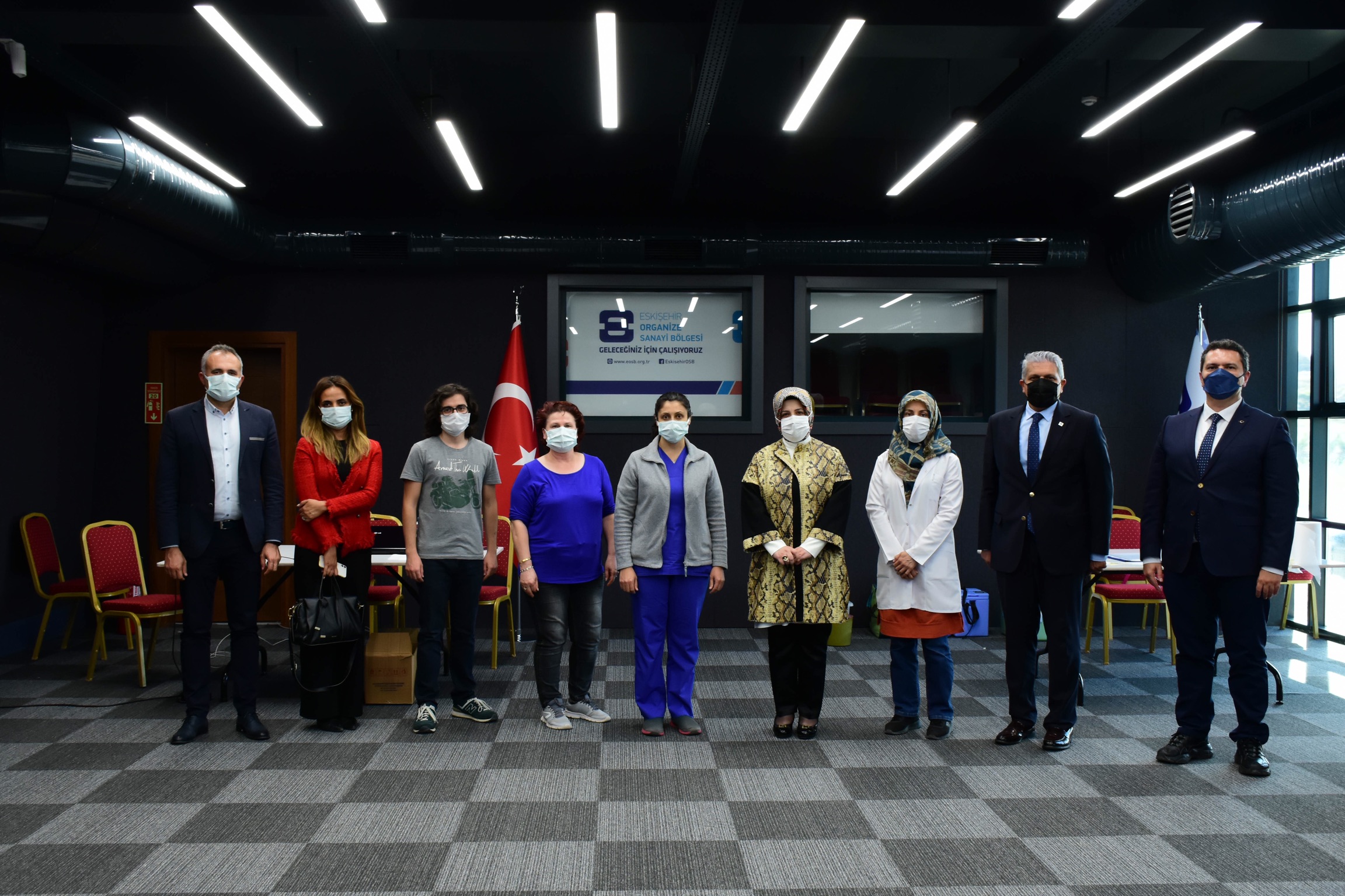Eskişehir OSB Başkanı Nadir Küpeli, pandemi sürecinde sağlık çalışanlarının toplum sağlığının korunması adına özverili çalıştığını, bölge müdürlüğü olarak her zaman sağlık çalışanlarının yanında olduklarını aktararak, desteklerinin artarak devam edeceğini belirtti. Başkan Küpeli, Eskişehir OSB’de üretim yapan firmalarda çalışan sağlığının korunması ve üretimin devamlılığı için Eskişehir Valiliği koordinasyonunda Sağlık İl Müdürlüğü ile yapılan iş birliği kapsamında devam eden aşı çalışması ve PRC test çalışması hakkında ise Ayyıldız’a bilgiler verdi. Başkan Küpeli, OSB’deki fabrikalarda çalışan 8 bini aşkın kadın çalışanının sağlıklarının korunmasının kendileri için çok önemli olduğunu belirterek, yapılacak çalışmaya gereken tüm katkıyı sunacaklarını belirtti.