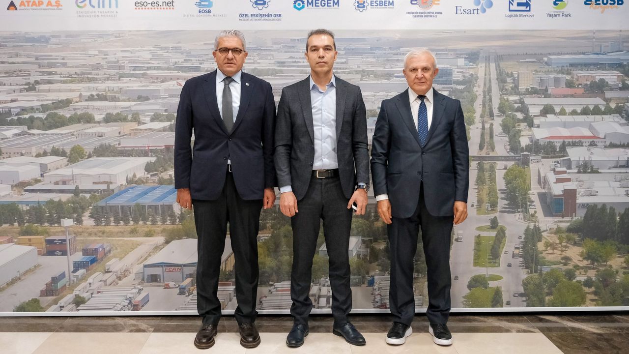 Eskişehir Vali Yardımcısı Dr. Hasan Çiçek, Sanayi ve Teknoloji İl Müdürü Muhammet Taha Güven ile birlikte Eskişehir Organize Sanayi Bölgesi (EOSB) Yönetim Kurulu Başkanı Nadir Küpeli’yi ziyaret etti. Başkan Küpeli, bölgedeki çalışmalar, projeler ve yatırımlar hakkında kapsamlı bilgiler sundu.
