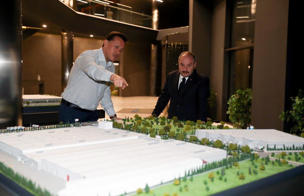 Seçim Bölgesi Bursa' ya geçerken İmişehir 1.Geliştirme Bölgesinde bulunan Nebi Hatipoğlu'na ait fabrikayı ziyaret eden Mustafa Varank Hatipoğlu'ndan fabrika üretim tesisleri hakkında bilgi aldı