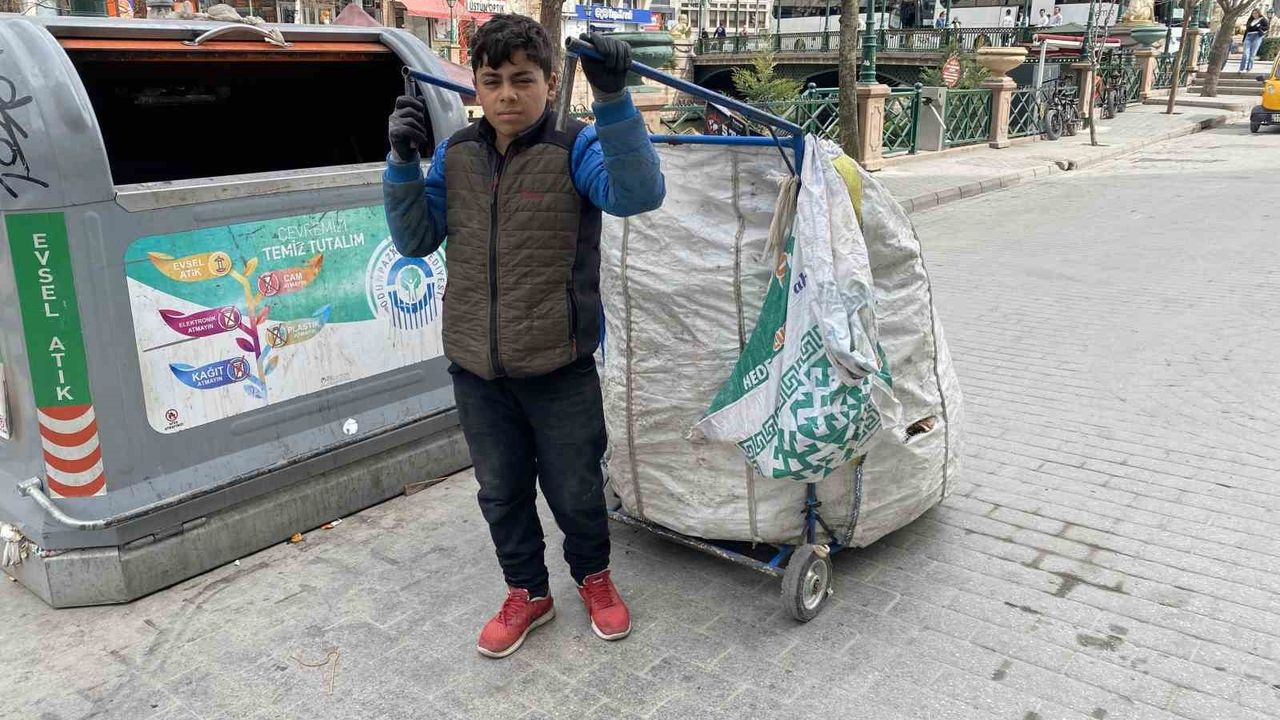 Eskişehir'de kardeşlerine bakabilmek için okula gitmek yerine boyundan büyük el arabası ile geri dönüşüm işçiliği yapan 13 yaşındaki Hasan El Helef, devlet yetkililerinin iş bulmak konusunda ailesine yardımcı olmasını bekliyor.