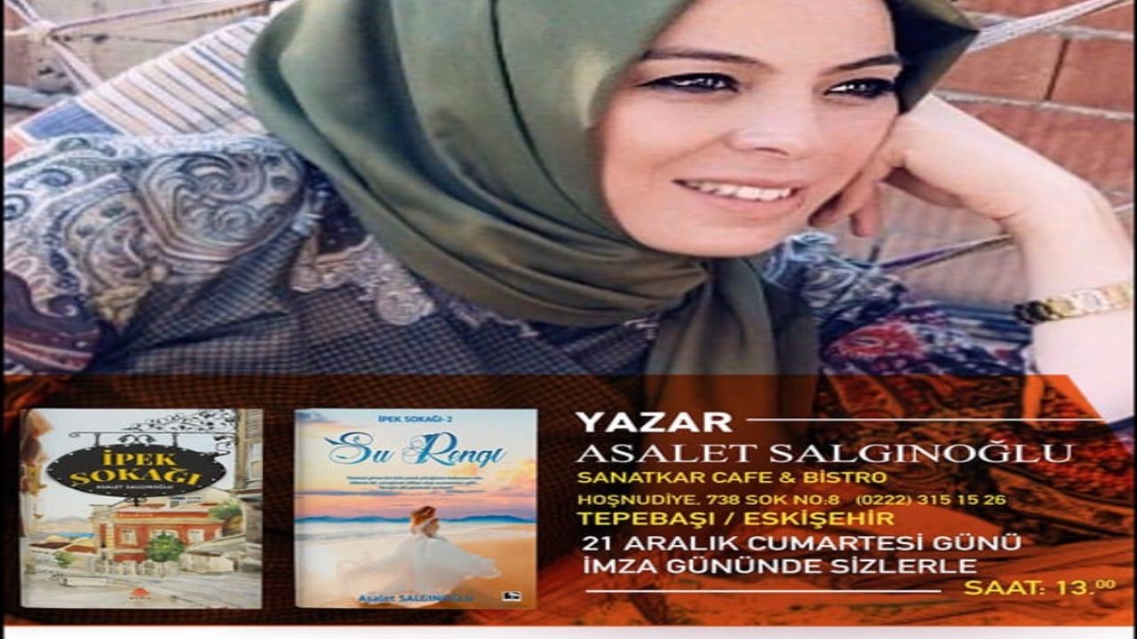 Eskişehirli yazar ve aynı zamanda haber sitemizin köşe yazarlarından Asalet Salgınoğlu, okurları ile buluşacak. İpek Sokağı ve İpek Sokağı 2/Su Rengi kitaplarının yazarı Asalet Salgınoğlu, 21 Aralık Cumartesi günü saat Sanatkâr Cafe&Bistro’da saat 13:00’de okurları ile bir araya gelerek, kitaplarını imzalayacak.