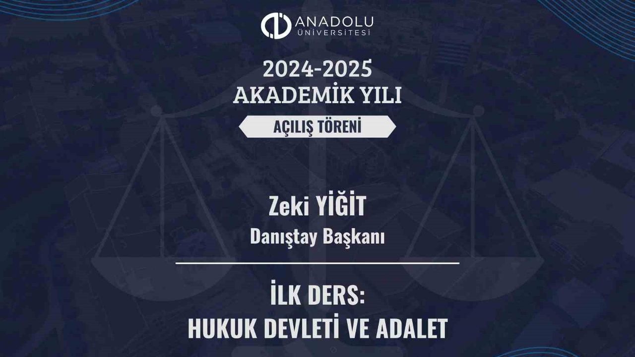 Bu yıl 66. kuruluş yıldönümünü kutlayacak olan Anadolu Üniversitesinin, 2024-2025 Akademik Yılı açılış dersini, “Hukuk Devleti ve Adalet” başlığı ile Danıştay Başkanı Zeki Yiğit verecek.