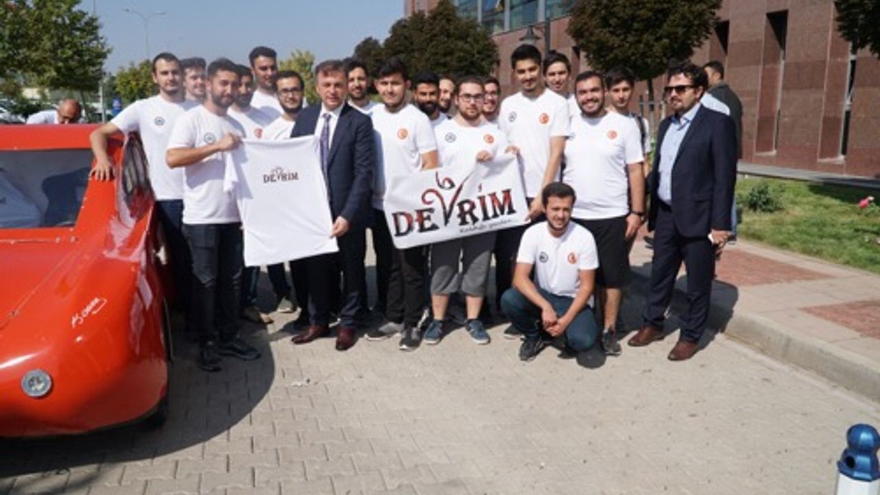 Eskişehir Osmangazi Üniversitesi’nde (ESOGÜ), 30 öğrencinin bir araya gelmesiyle yapılan elektrikli araca, Türkiye’nin ilk yerli otomobili olan ‘Devrim'in adı verildi.