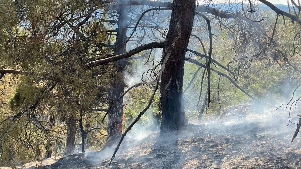 Eskişehir'in Sarıcakaya ilçesindeki ormanlık alanda yıldırım düşmesi sonucu çıkan orman yangını helikopter ile havadan yapılan müdahalelerle söndürüldü.