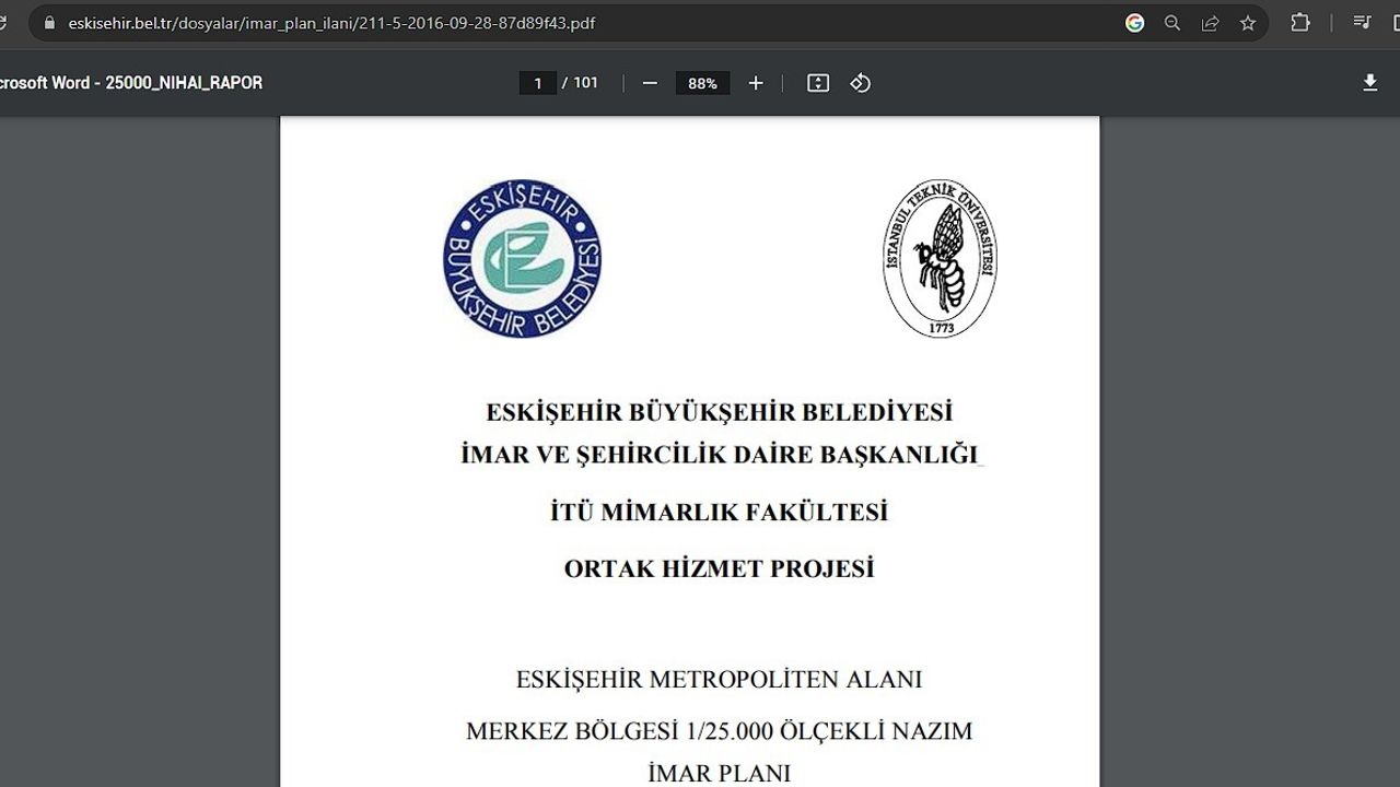 Öte yandan İstanbul Teknik Üniversitesi Mimarlık Fakültesi’nin de isminin geçtiği ve 2015 yılının Eylül ayında Eskişehir Büyükşehir Belediyesi’nin internet sitesinde yayınlanan 'Eskişehir Metropoliten Alanı Merkez Bölgesi 1 / 25.000 Ölçekli Nazım İmar Planı’ dikkat çekti. Tepebaşı ve Odunpazarı Belediyelerini kapsayan projede planlama alanı bin 731,45 kilometre kare olarak tanımlanıyor. Paylaşılan PDF dosyasında hem çevre yoluyla hem de trafik yoğunluğuyla ilgili yapılan planlamalar gözlere çarparken, depremsellik ve diğer doğal tehlikelere karşı daha güvenli olduğu belirtilen bazı bölgelerin hala imara açılmamış olması ise bazı emlakçılar tarafından eleştirildi.