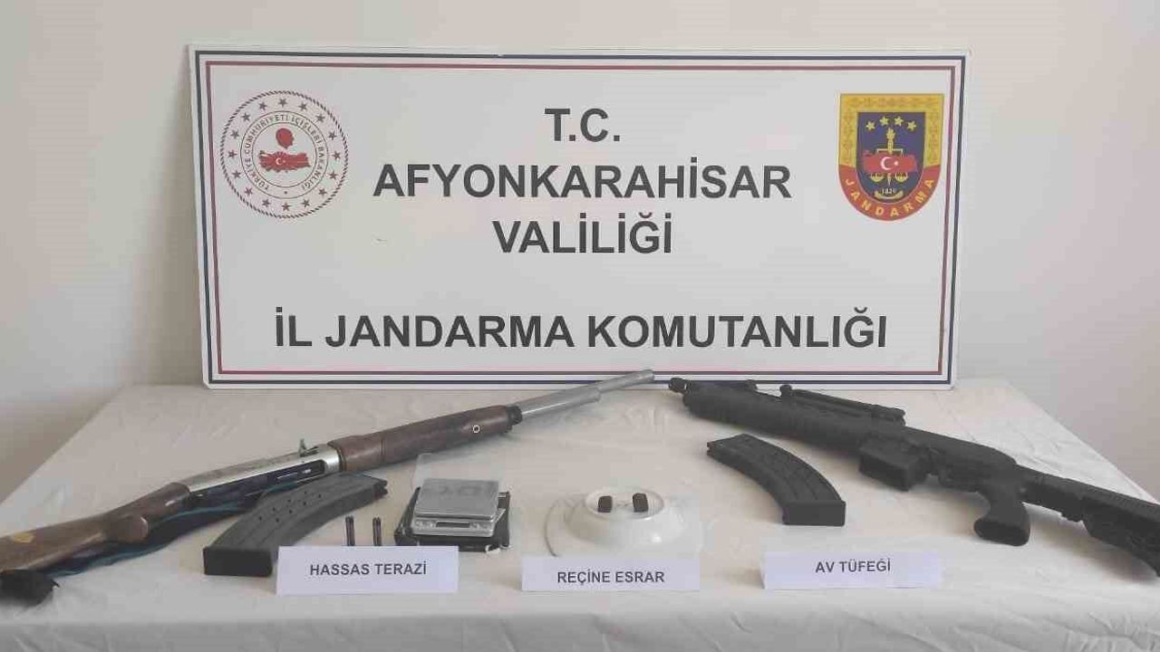 Afyonkarahisar İl Jandarma Komutanlığı, uyuşturucu ile mücadele çalışmalarını sürdürüyor. Jandarma Emirdağ ilçesine bağlı Demircili köyünde ikamet eden Ö.K. isimli şahsın yurt dışından temin ettiği uyuşturucu maddeleri Emirdağ ve köylerinde satarak uyuşturucu madde ticareti yaptığı yönünde bilgi elde etti. Bunun üzerine harekete geçen ekipler şüpheli şahsın ikametinde ve aracında arama yaptı. Yapılan aramada 9 gram reçine esrar, 1 adet hassas terazi, 2 adet ruhsatsız av tüfeği, 1 adet cep telefonu ele geçirdi. Gözaltına alınan şahsın işlemlerinin devam ettiği bildirildi.