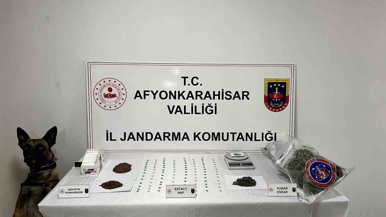 Edinilen bilgilere göre, Afyonkarahisar İl Jandarma Komutanlığına bağlı ekipler Çayırbağ beldesinde ikamet eden H.K. isimli şahsın çeşitli yollardan temin ettiği uyuşturucu maddeleri satacağı yönünde bilgi aldı. Ardından şahsın evine baskın düzenleyen ekipler eğitimli narkotik köpekleri ile yaptığı aramada 106 adet extacy uyuşturucu hap, 237 gram esrar, 2 gram skunk, 3 gram extacy kırıntısı,
