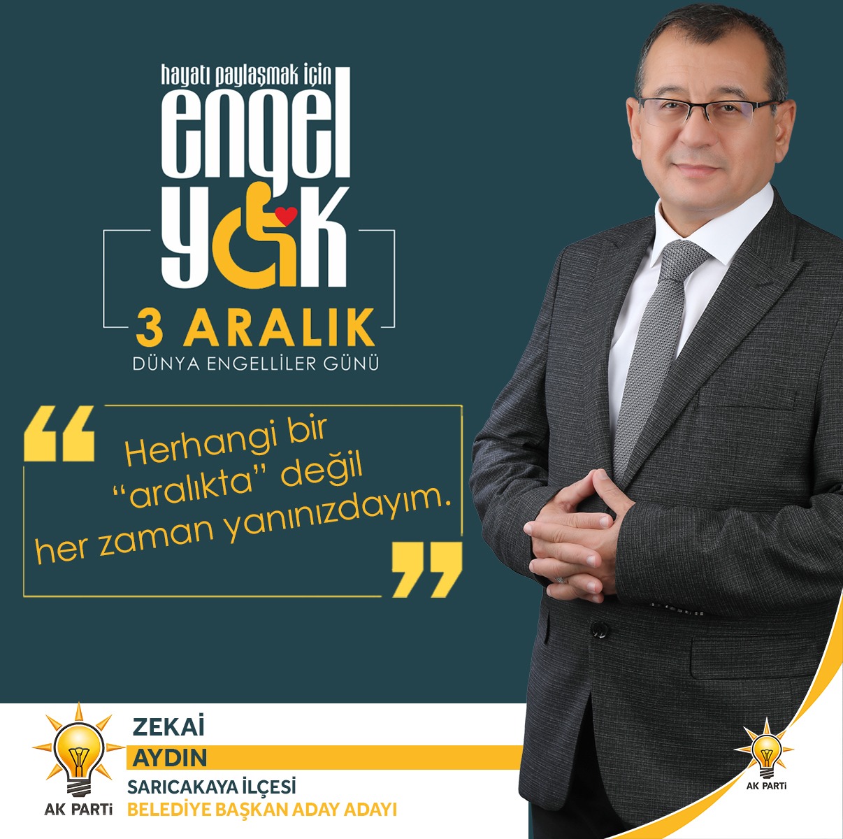 AK Parti Sarıcakaya Belediye Başkan Aday Adayı Zekai Aydın 3 Aralık Dünya Engelliler Günü dolayısıyla bir paylaşımda bulundu.